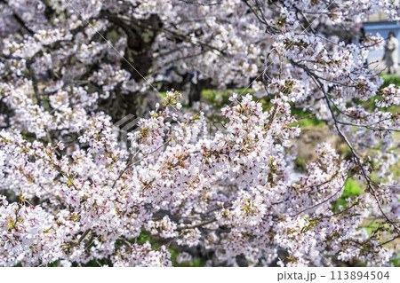 春の桜並木 満開の観音寺川の桜 福島県猪苗代町
