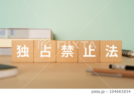 独占禁止法と書かれたブロックが置かれたデスク
