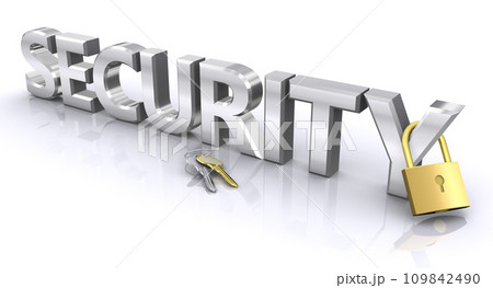南京錠でガードされるSECURITYの文字、セキュリティイメージ