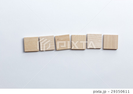 6個のおもちゃのブロック、タイトル、キャッチフレーズ