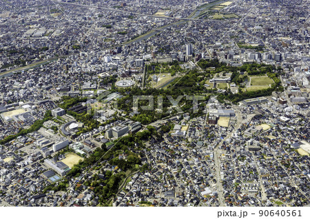 金沢の兼六園付近を空撮