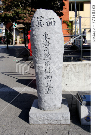 阪急箕面駅前にある箕面 東海自然歩道西の起点 の石碑 アップ