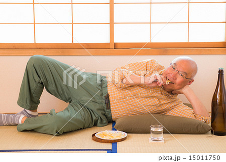 日本酒を飲むシニア