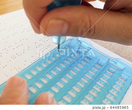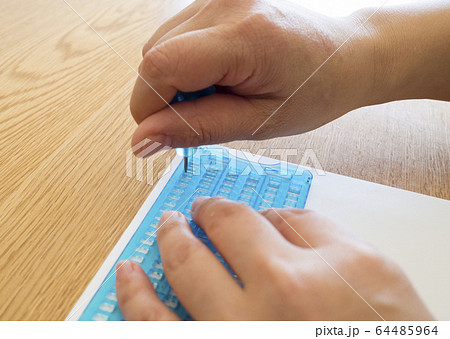 点字器と点筆を使って点字を打つ
