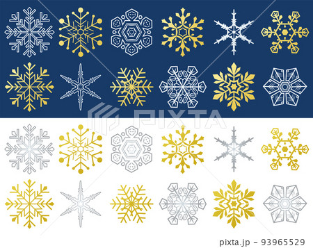 水彩風 シンプルで美しい雪の結晶 冬 雪 六花 冷凍 装飾イラストセット