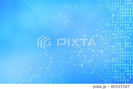 デジタルネットワークをイメージした六角形と四角形のアブストラクト素材、青いグラデーション背景