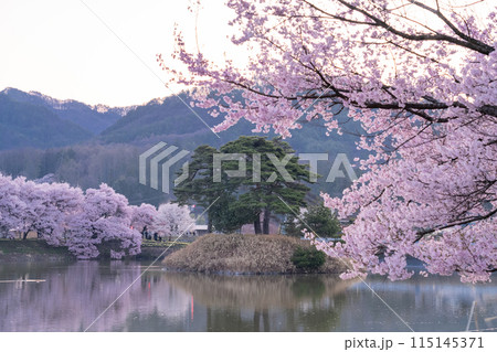 信州の春 六道の堤にある桜風景