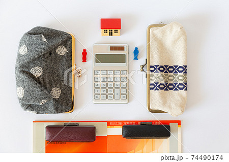 二つの財布と銀行通帳 夫婦 カップル 家計 ペアローン お金イメージ