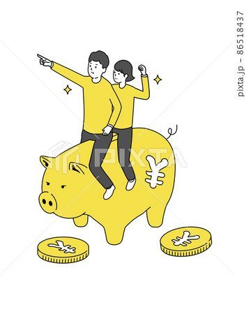 お金を貯める若い夫婦のイメージイラスト、ベクター