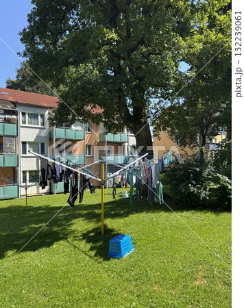 Clothes are hanging outdoors in a picturesque parklike setting thats truly delightful