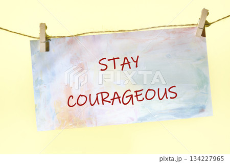 A vibrant banner hangs between two clothespins, boldly stating stay courageous. Its soft pastel colors create a welcoming atmosphere that inspires positivity and determination