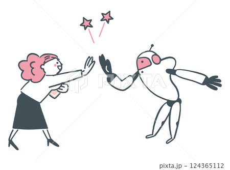 AIロボットと女性のハイタッチ ストックイラスト素材