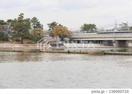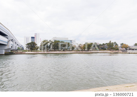 カモメが舞う武庫川河畔の 兵庫医科大学と兵庫医科大学病院