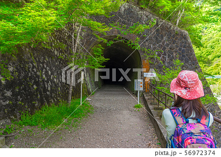 JR福知山線廃線跡のハイキングコースを歩く女性(兵庫県宝塚市玉瀬)※作品コメント欄に撮影位置