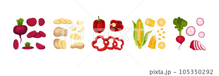 Raw Vegetable Sliced or Chopped as Cooking Ingredient Vector Set