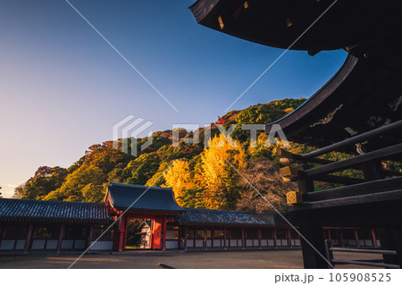 京都府八幡市高良神社で晩秋の黄色に色づいたイチョウを撮影