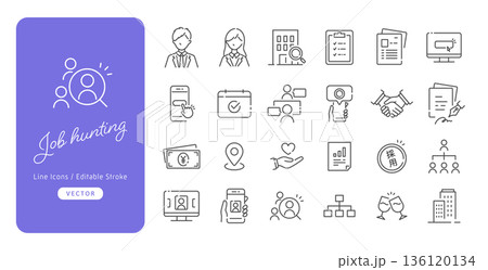 就活や人事採用に使えるジョブハンティングのベクターアイコンセット(線画・モノクロ・アウトライン)