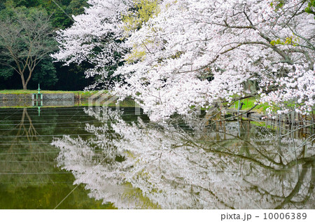 内山永久寺跡の水面に映る満開の桜(奈良県天理市)