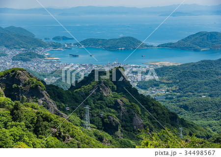 小豆島 寒霞渓 四方指展望台からの内海湾と草壁港 寒霞渓ロー