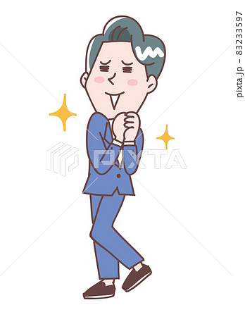 笑顔で喜ぶ若い男性の全身イラスト