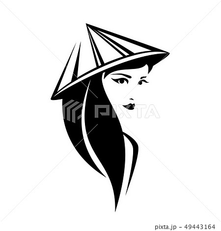 asian woman in conical hat black and white vector