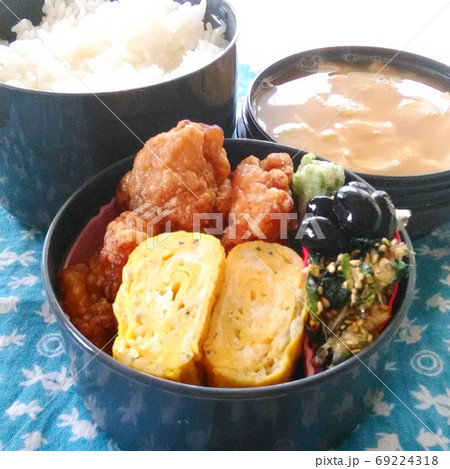 おかずの定番、玉子焼き唐揚げの入った手作り弁当