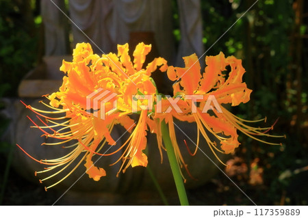 兵庫県加古川市の円照寺に咲くオレンジ色の彼岸花