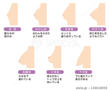 女性のバスト・乳房の形の種類のイラスト シンプルタッチ