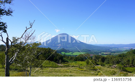青空の下にそびえる羊蹄山(2024年9月撮影)