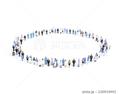円形に並ぶ医療従事者と患者 Large