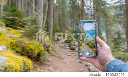 Enjoying a peaceful moment in nature while taking a selfie on a scenic hiking trail surrounded by trees