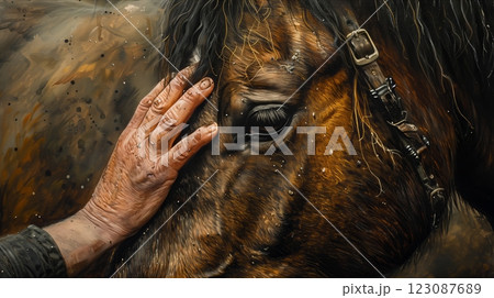 A gentle hand touching a horse, symbolizing connection and compassion in nature.