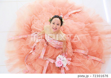 成人記念のウエディングドレス、カラードレス試着撮影、フォトウエディング
