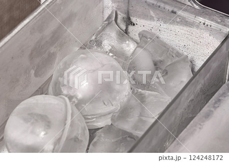 冷蔵庫の引き出しに並ぶ氷、家庭の丁寧な暮らしの一コマ