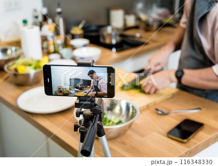 The chef is broadcasting live from workshop how to prepare a vegetarian lentils soup