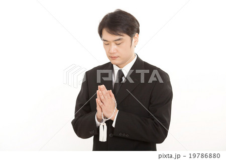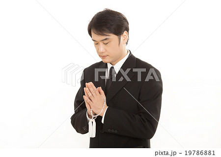 葬儀で冥福を祈る男性