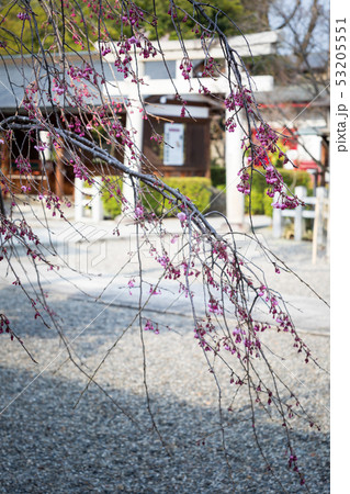 車折神社、春光舎前の枝垂桜の枝ぶり