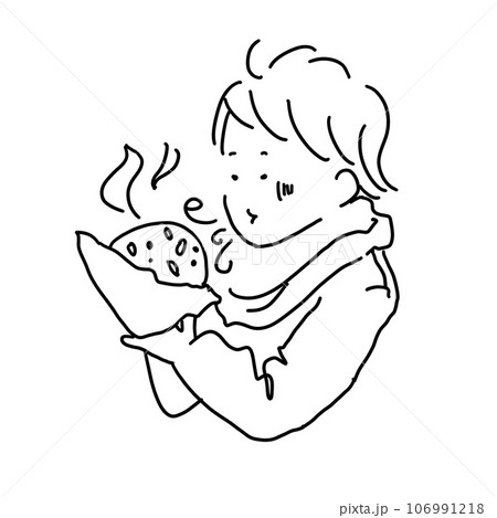 熱々のハンバーガーをふーふーしている人の線画イラスト