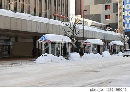 真冬の北海道小樽市にある南小樽駅に到着した列車