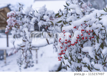 冬の京都 大原 雪景色の三千院参道 茅穂橋(未明橋)