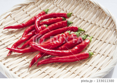 冬の窓辺で乾燥する唐辛子