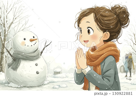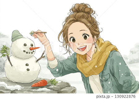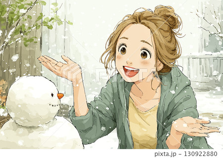 美優シリーズ:美優が雪だるまを作る冬の情景