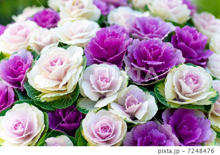 白い背景の淡い葉牡丹