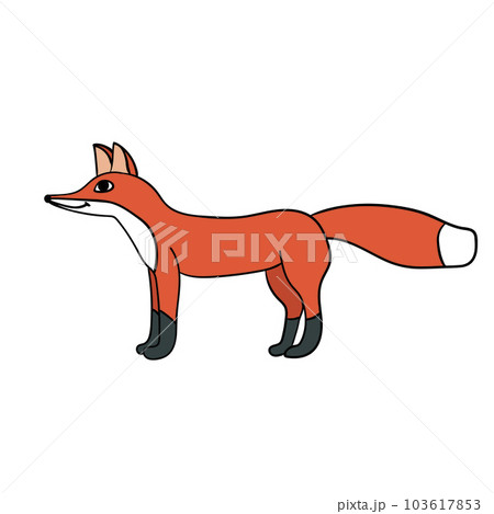 Cartoon doodle linear fox isolated on white background.