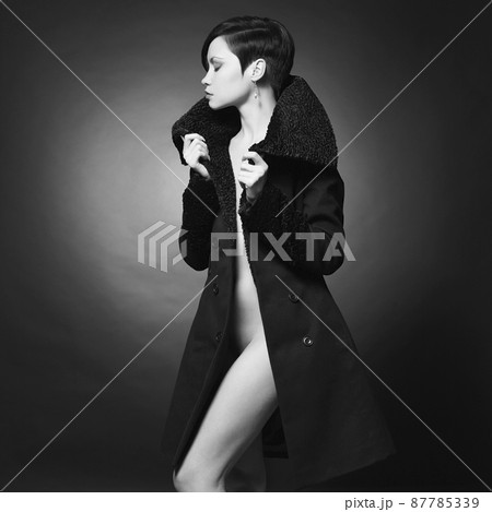 Portrait of a young beautiful girl in a black coat