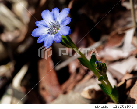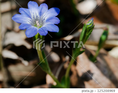 早春の花 リンドウ科ハルリンドウの漏斗状の青い花冠