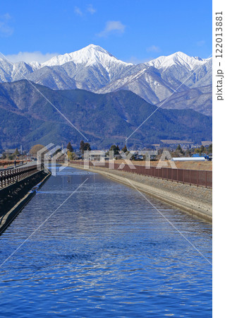 春の安曇野 拾ヶ堰と北アルプス 長野県安曇野市