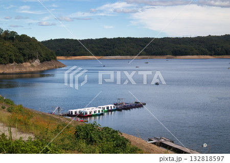 愛知県犬山市の入鹿池に浮かぶワカサギ釣りのボート