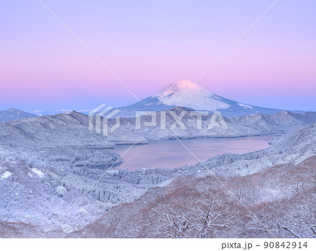 富士山 初冬 冠雪 朝焼け 狭山湖畔からの眺め