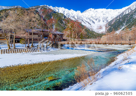 【レア素材】冬の上高地 河童橋付近の風景【長野県】